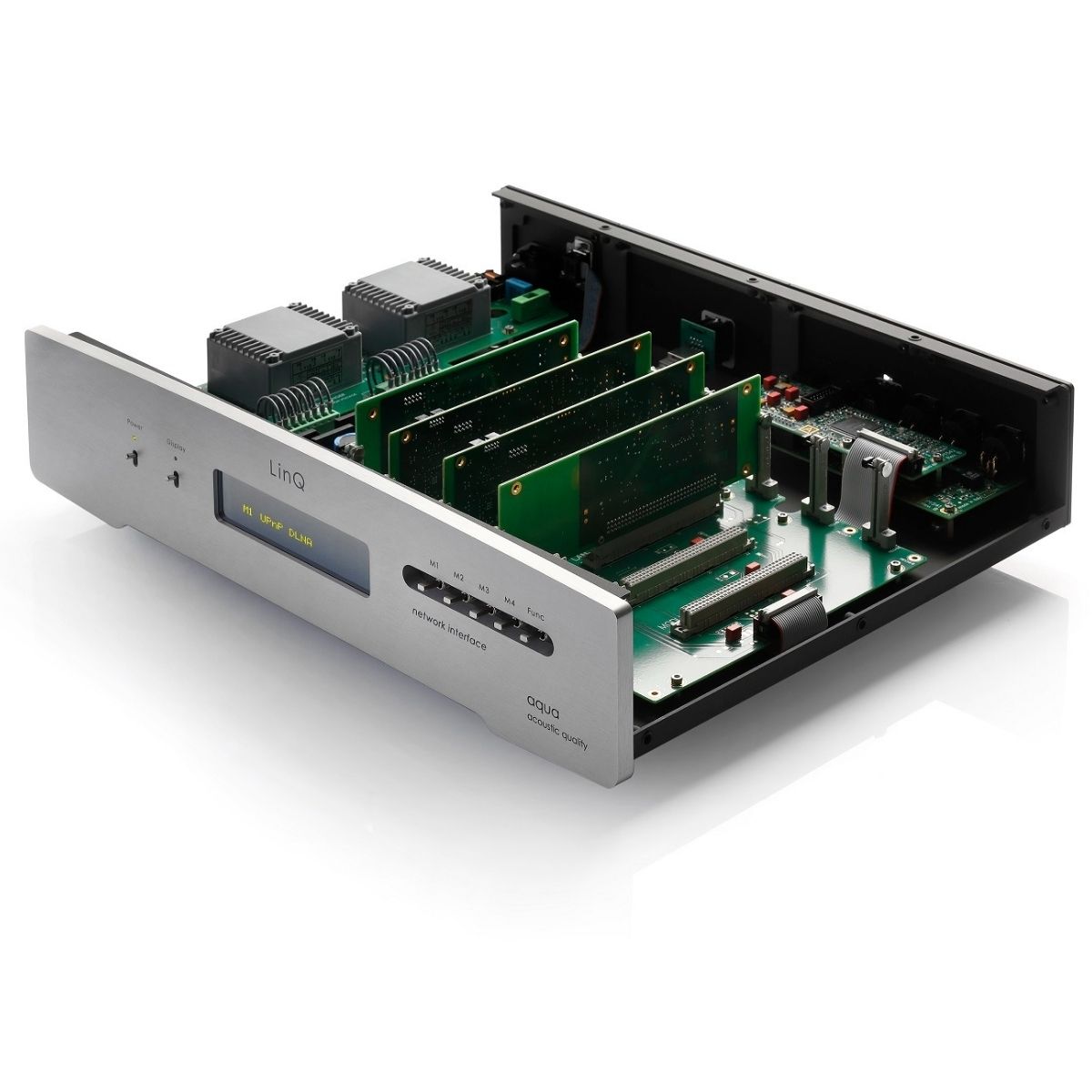 Teniendo siempre como objetivo el resultado del sonido, LinQ no utiliza una interfaz USB: la salida está en AQlink, la conexión propietaria de aqua I2S. De esta manera se salta el «paso» en USB, evitando cualquier pérdida en la calidad del sonido.