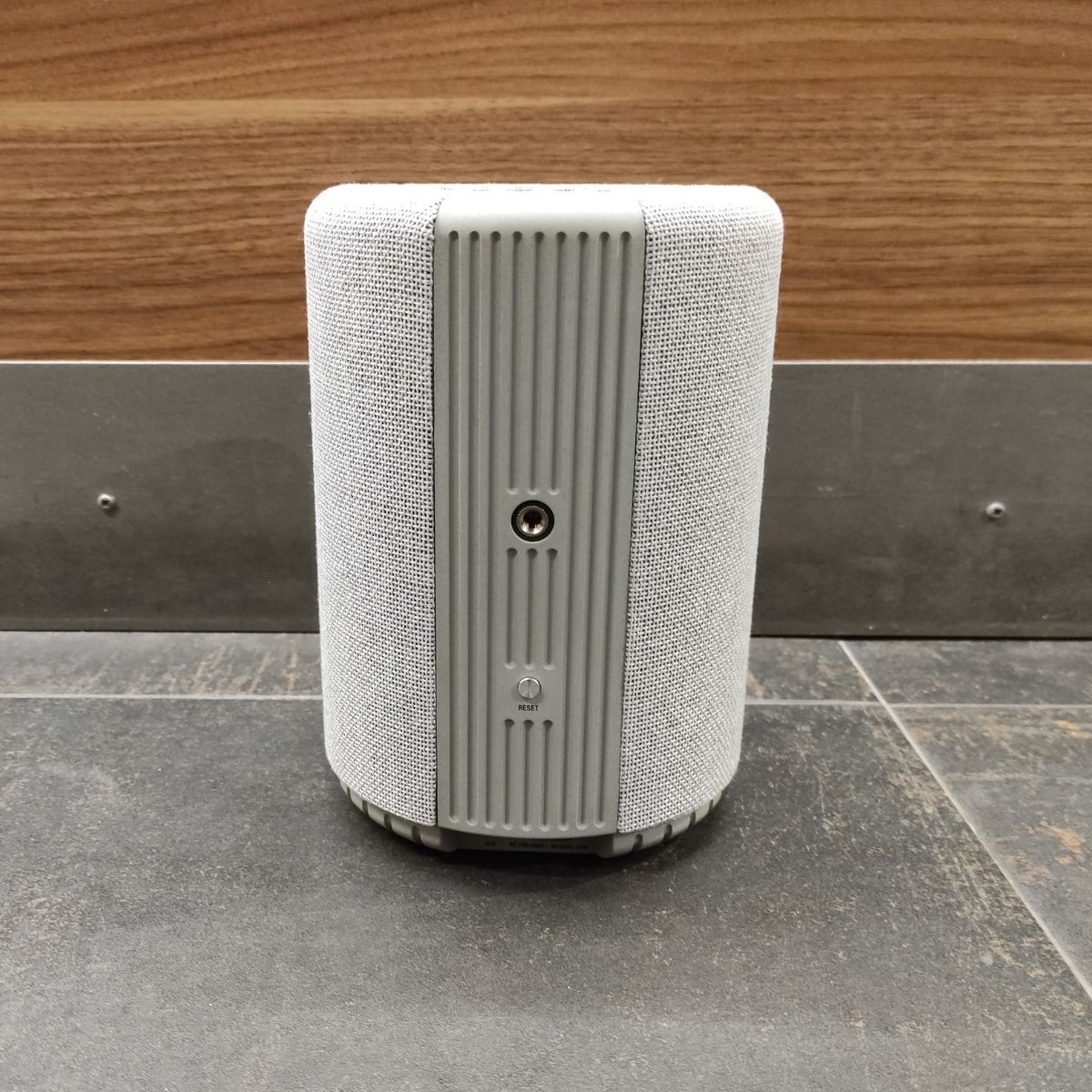 Un altavoz con un tamaño modesto y un diseño redondeado, que hace una adición inteligente al espacio para la habitación más pequeña. El frente de tela complementa perfectamente las tendencias modernas de diseño de interiores con la opción de dos tonos de gris, lo que permite una combinación de colores completa para su hogar.