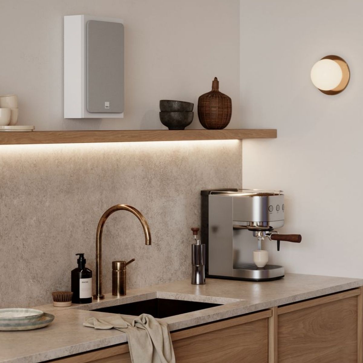 Combinando estilo y sonido, SONIK ON-WALL se monta fácilmente en cualquier habitación, complementando interiores modernos con discreta elegancia.
