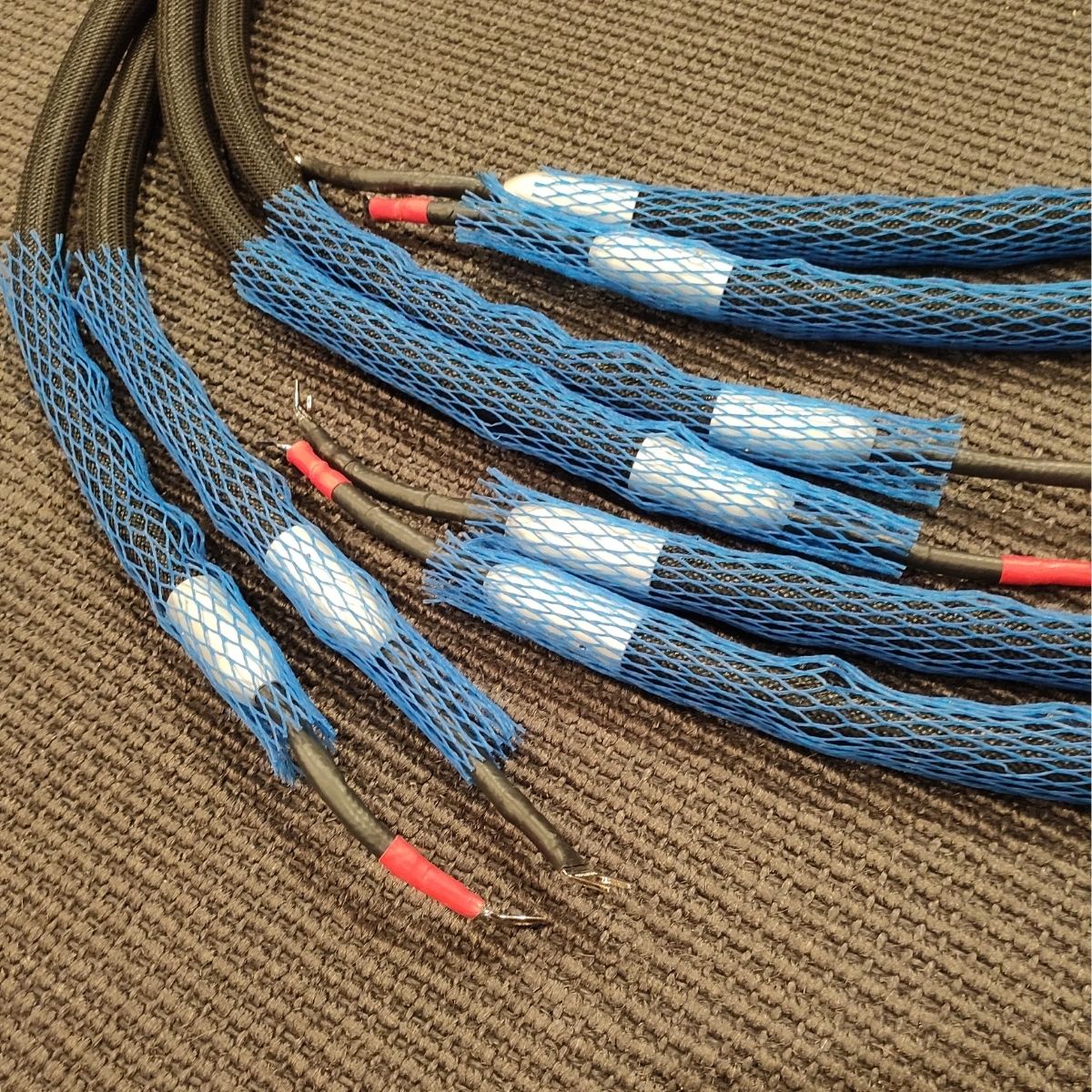 Los cables para altavoces de la Serie X están fabricados con hilos de plata fina pura combinados con hilos de cobre bañado en plata; quince hilos por núcleo. Cada hilo está aislado individualmente con algodón, lo que proporciona un sonido natural. Los núcleos están sellados en tubos herméticos, lo que los protege contra la corrosión.