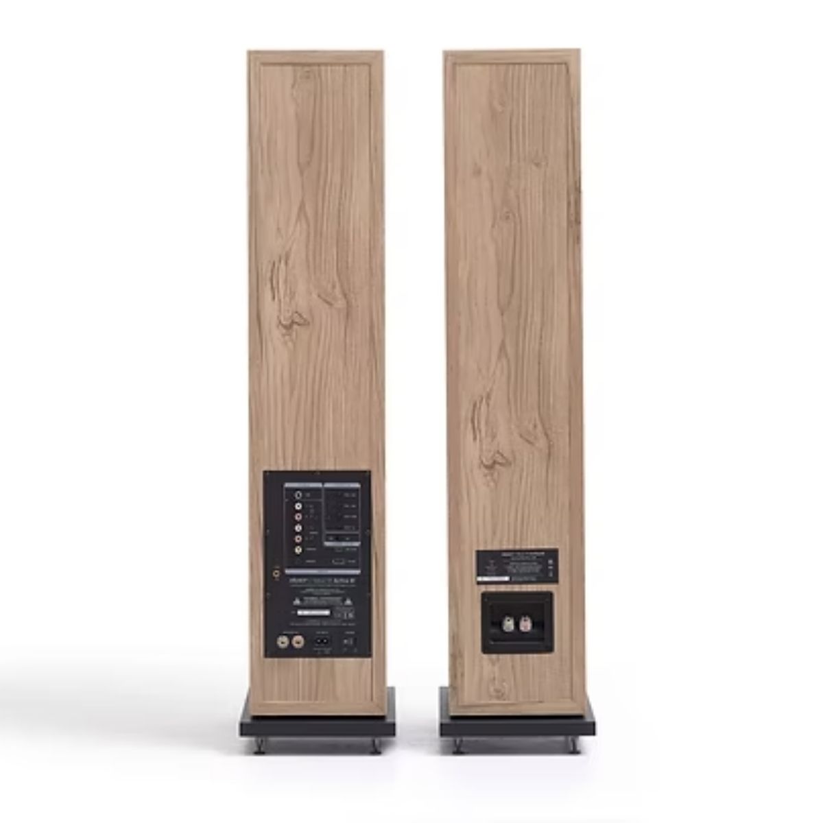 Con sus dos transductores de medios-graves de 130 mm, fabricados en pulpa de celulosa recubierta de fibra de vidrio , ofrece graves profundos y medios expresivos . El tweeter de cúpula de seda de 25 mm , alimentado por un imán de neodimio , garantiza agudos suaves y refinados . Todo el sistema está alimentado por un amplificador estéreo integrado de 2 × 50 W RMS , que garantiza un excelente control dinámico y una reproducción equilibrada .
