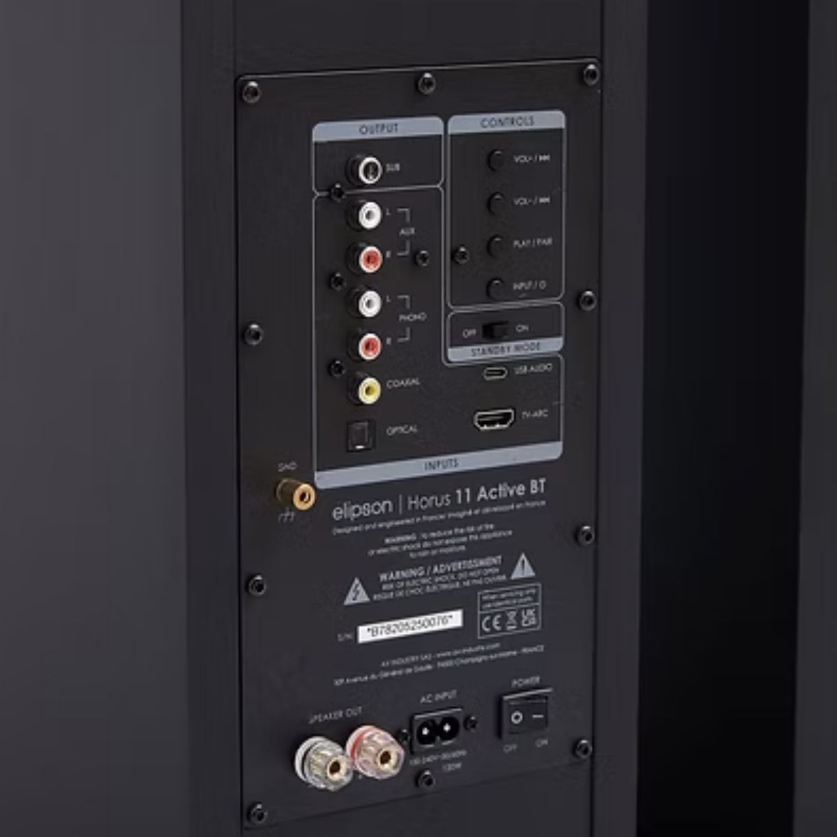 Compacto para un altavoz de suelo, finamente acabado y entregado con todos los accesorios necesarios (cable de alimentación, cable de altavoz, control remoto), el Horus 11F Active BT ofrece una solución potente , elegante y perfectamente integrada.