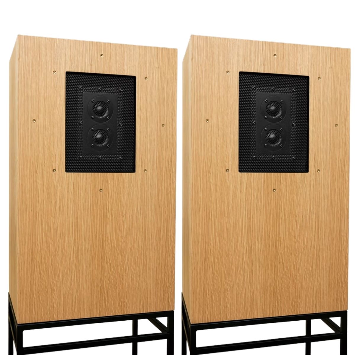 El altavoz de graves se encuentra tras una placa metálica perforada, y los tweeters se montan en un panel central junto al altavoz de graves.