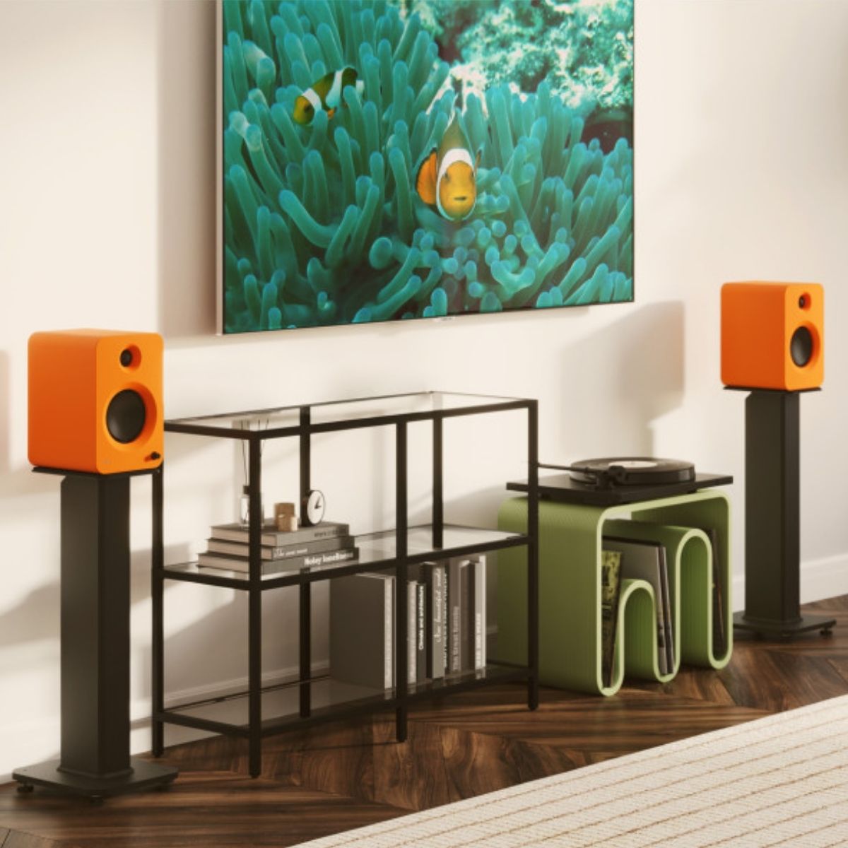 - Construcción y diseño pensado para escritorio o sala, con dimensiones razonables, acabado premium y control remoto completo.