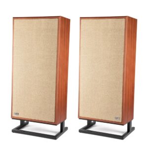 El KLH Model Three es un altavoz compacto de estantería que ofrece un rendimiento comparable al de los modelos de suelo más grandes. Su diseño de dos vías continúa la tradición de la suspensión acústica de KLH, ofreciendo un sonido de alta fidelidad en un formato más pequeño, ideal para los amantes de la música con espacio limitado. A diferencia de la mayoría de los altavoces de este precio, el Model Three se puede colocar cerca de la pared o en una estantería, lo que proporciona flexibilidad en la configuración.