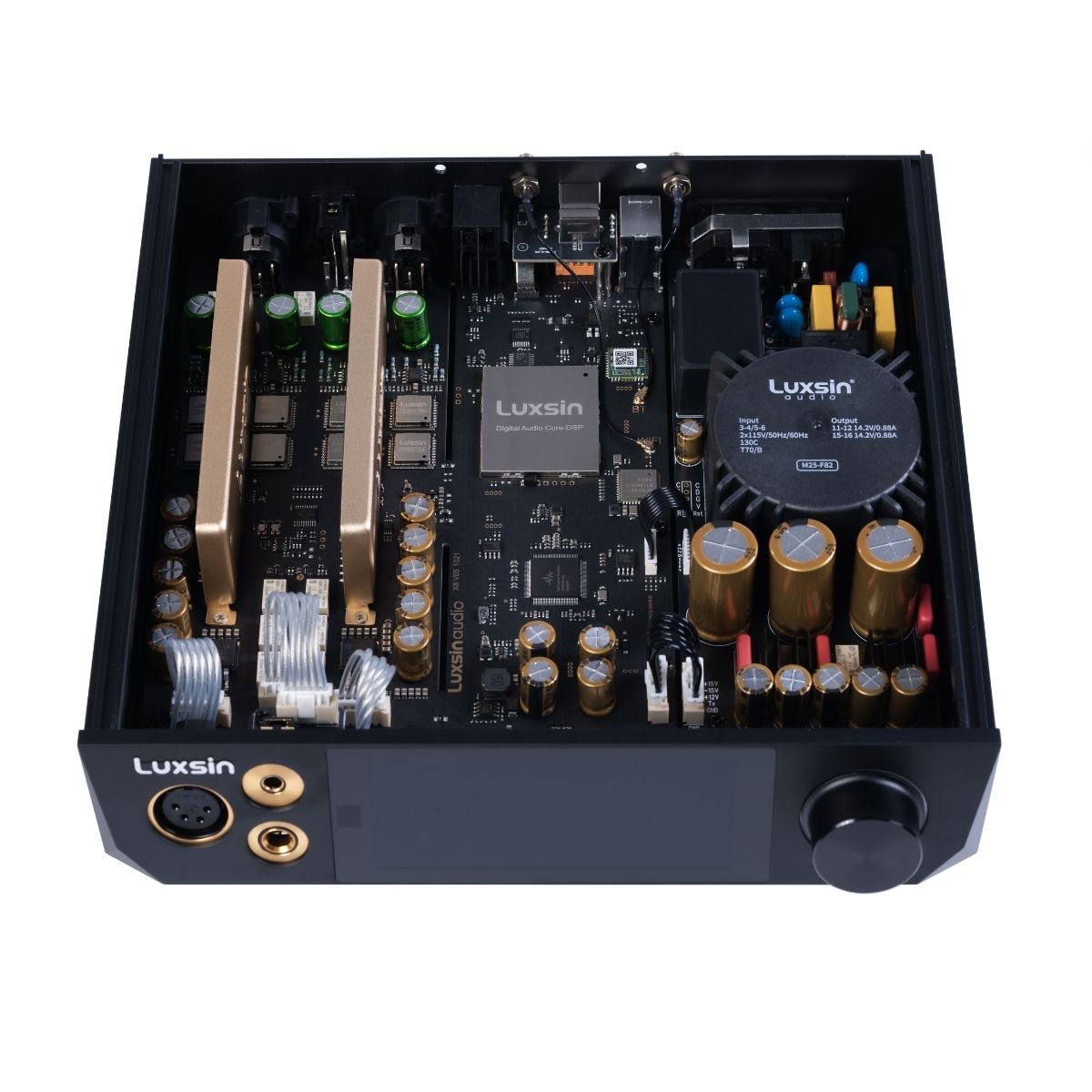 El núcleo DigitalAudio del X8 es un módulo de procesamiento de alto rendimiento, completamente personalizado por Luxsin, y el primero de su tipo en implementarse en un producto de audio profesional. Basado en un DSP HiFi-5 de doble núcleo y arquitectura ARM STAR , con una gran SRAM integrada y un DSP que opera a más de 500 MHz , ofrece el margen computacional necesario para el procesamiento complejo de audio en tiempo real y algoritmos de ajuste avanzados. Su diseño escalable también permite el procesamiento de audio con IA de vanguardia , lo que dota al X8 de potentes capacidades de audio digital y un potencial a largo plazo para una expansión continua de funciones.