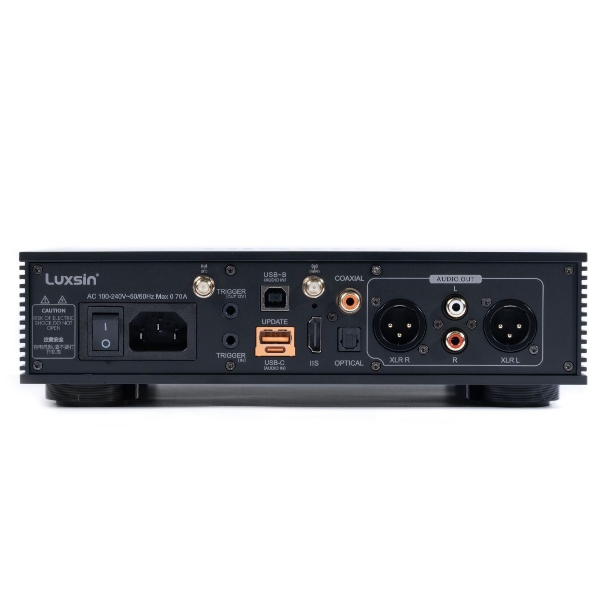 El X8 está equipado con una gama de interfaces de entrada de audio digital, incluyendo USB-B/C, óptica, coaxial e IIS, para admitir diversos dispositivos fuente. La entrada IIS admite hasta ocho configuraciones personalizadas, lo que garantiza la compatibilidad con fuentes digitales de múltiples tipos y marcas. También cuenta con terminales de entrada/salida de disparador de 12 V, lo que permite una integración perfecta en sistemas de audio existentes para una sincronización más fluida de dispositivos y un control automatizado, lo que simplifica y optimiza el funcionamiento del sistema.