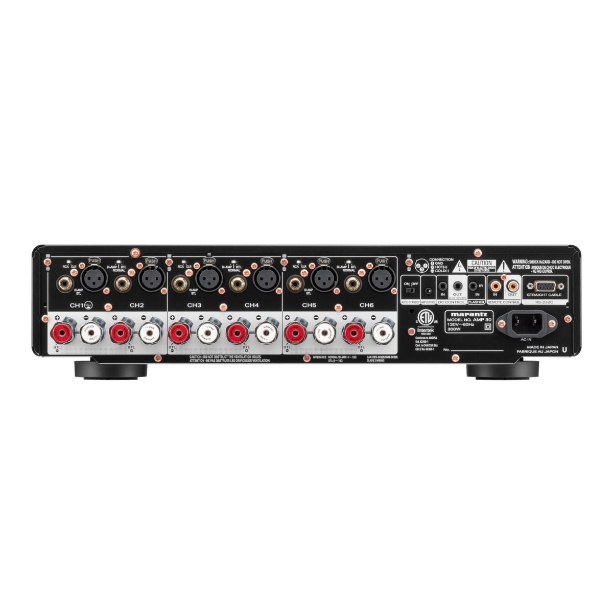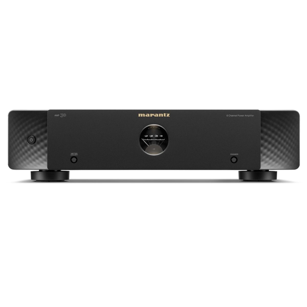 El AMP 30 es un amplificador de 6 canales, compacto y de gran potencia, que puede combinarse con un preamplificador AV para crear un sistema de cine en casa excepcional. El AMP 30 ofrece una potencia nominal de 200 vatios por canal a 8 ohmios y 400 vatios por canal a 4 ohmios, y se basa en la tecnología HDAM exclusiva de Marantz y en la amplificación de clase D de alta eficiencia y baja distorsión. Combínelo con amplificadores de potencia adicionales AMP 30, AMP 20 o AMP 10 para configuraciones de altavoces más complejas.