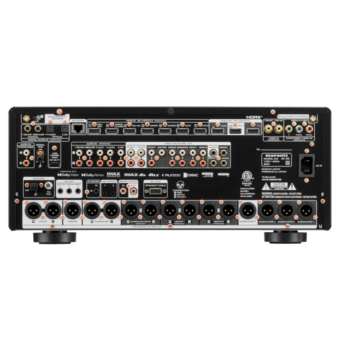 El Marantz AV 30 ofrece un rendimiento y una capacidad excepcionales para grandes salas multimedia y sistemas de cine en casa dedicados. Este preamplificador AV balanceado de 11.4 canales incorpora circuitos discretos Marantz HDAM y siete entradas HDMI, todas compatibles con 8K Ultra HD. Equipado con HEOS™ para streaming de música de alta resolución, el AV 30 incluye corrección de sala con Audyssey MultEQ XT32 y Dirac Live opcional. Ofrece Dolby Atmos, DTS:X Pro y AURO-3D, y cuenta con múltiples entradas y salidas de preamplificador balanceadas para todos los canales, incluyendo cuatro subwoofers independientes.