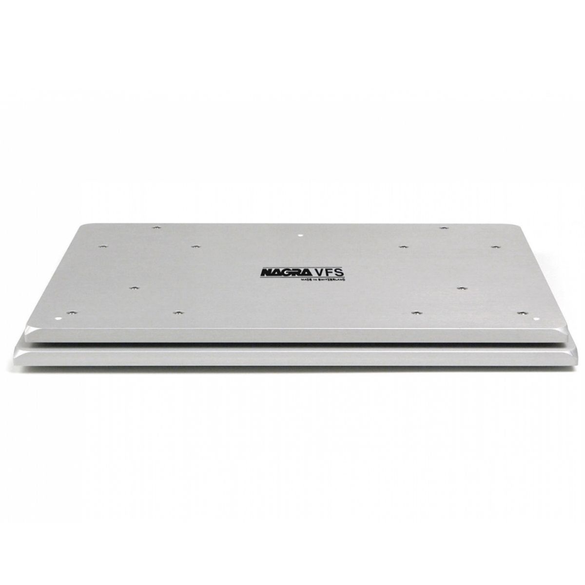 VFS y CLASSIC VFS (para AMP y para fuente) es un sistema que consta de dos placas de aluminio macizo colocadas una sobre otra para eliminar las vibraciones mecánicas externas. La absorción de vibraciones se suele subestimar en los sistemas de alta fidelidad. Es conveniente estudiarla con detenimiento para obtener al máximo las prestaciones del equipo. Si bien todas las placas de circuitos electrónicos del interior del equipo Nagra están montadas en bloques silenciadores especiales, el VFS permite avanzar un paso en la reproducción de sonido verdadero.