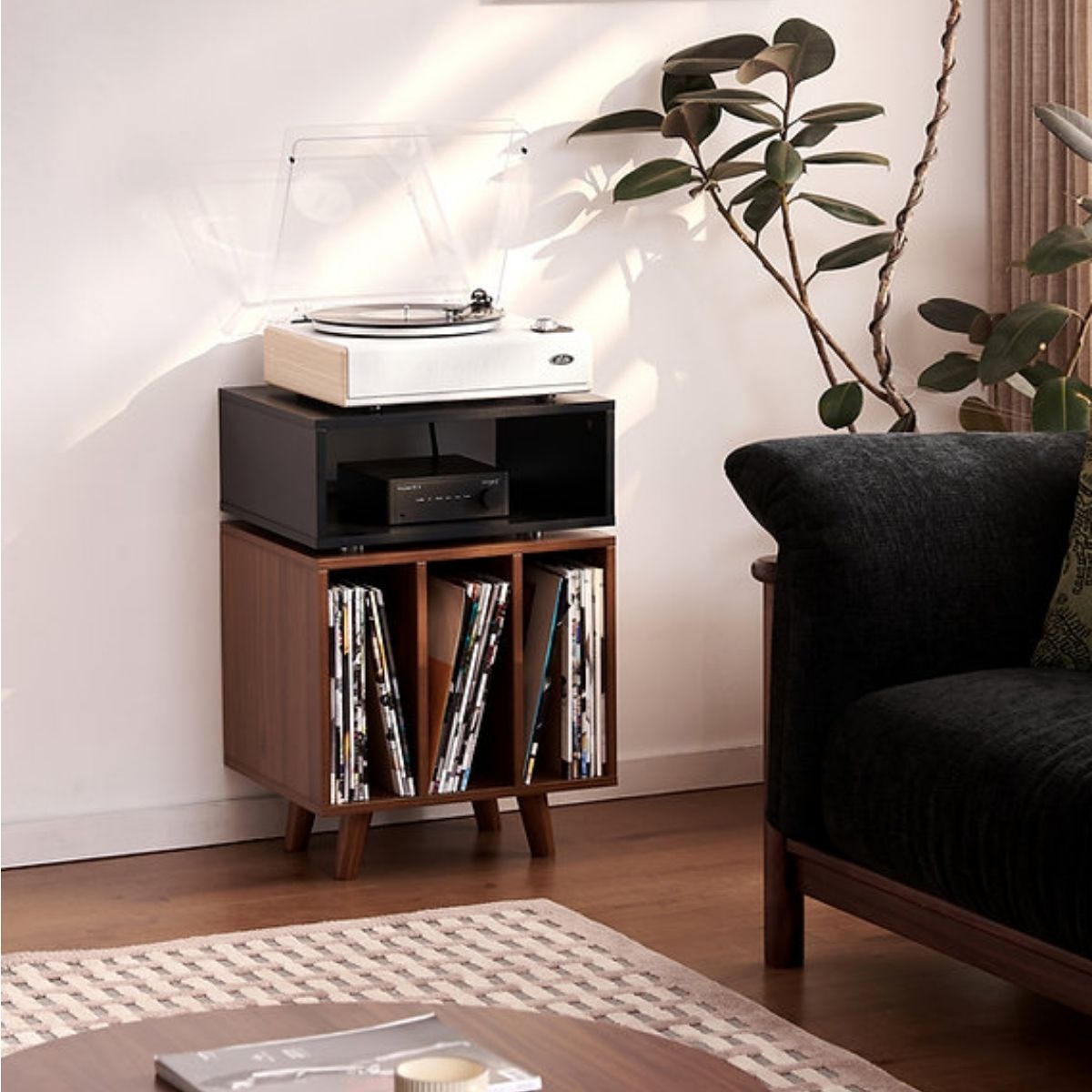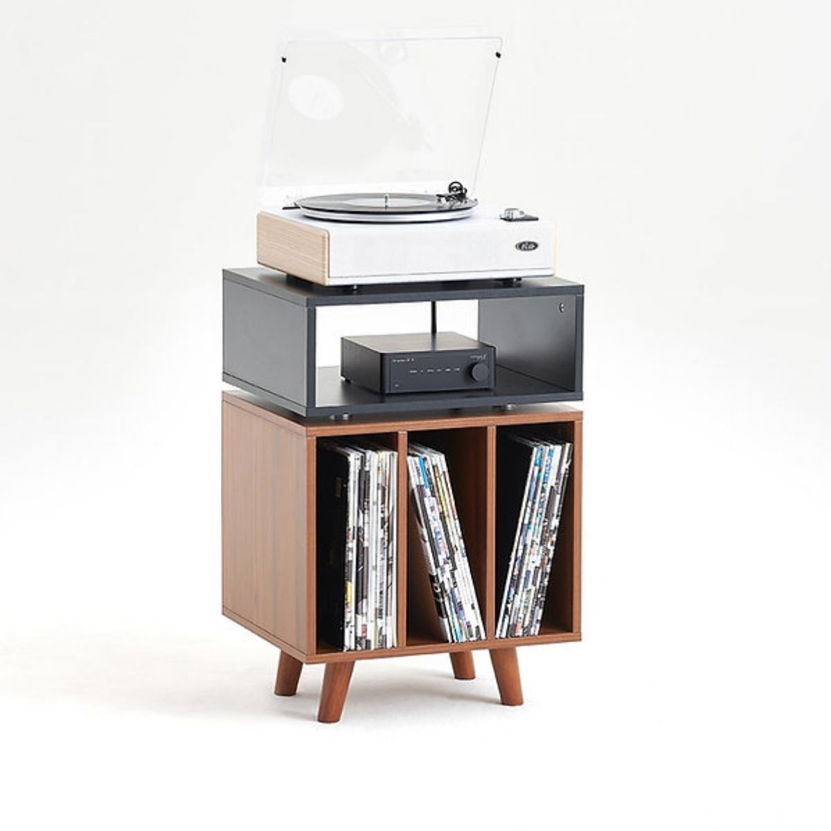 Mueble para tocadiscos y discos de vinilo