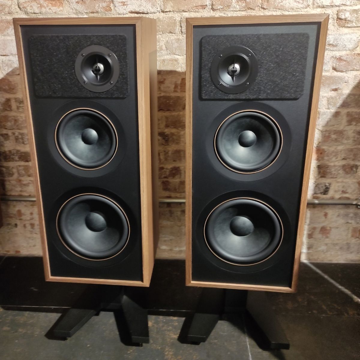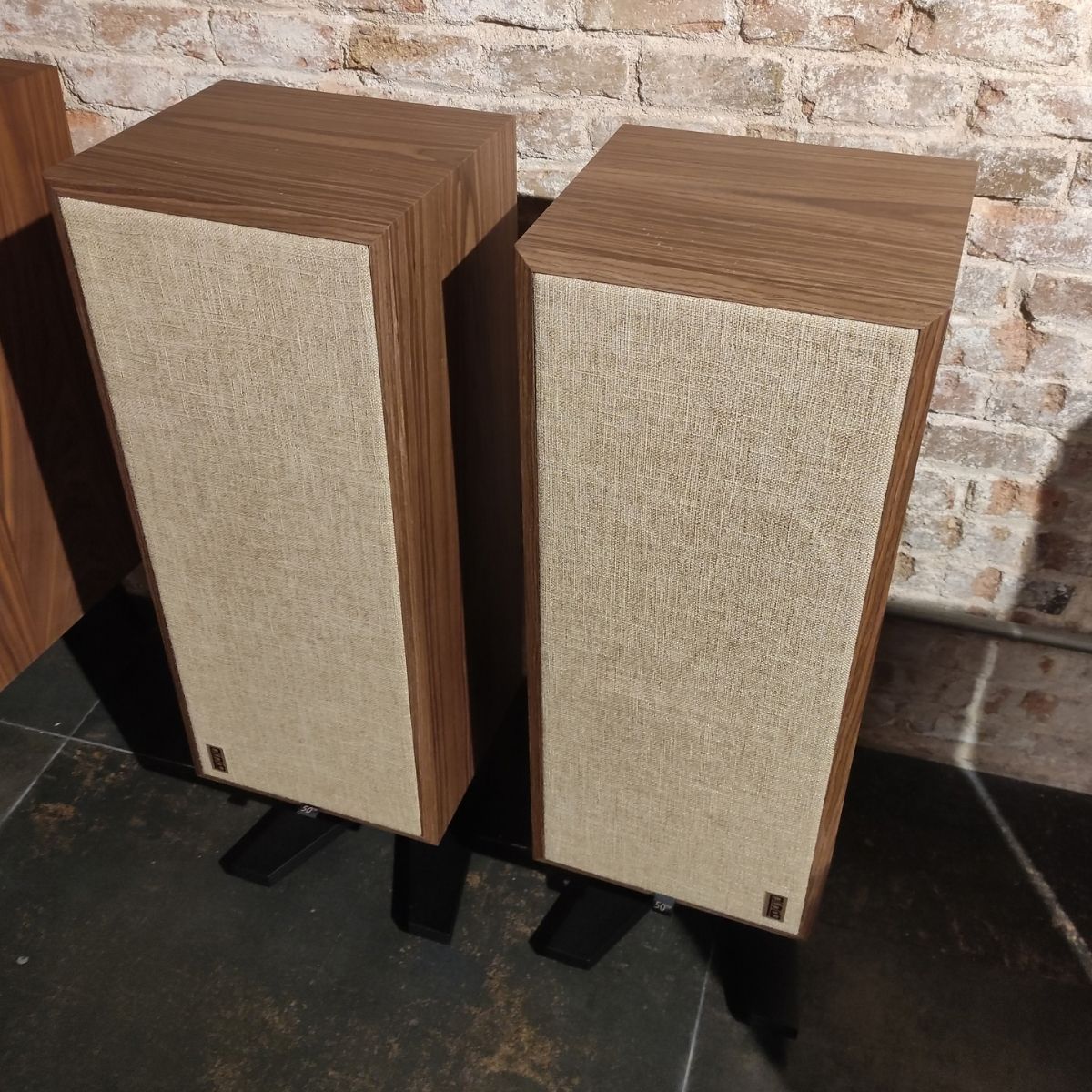 Acabado Walnut Veneer de grano abierto y estilo retro, con stands dedicados