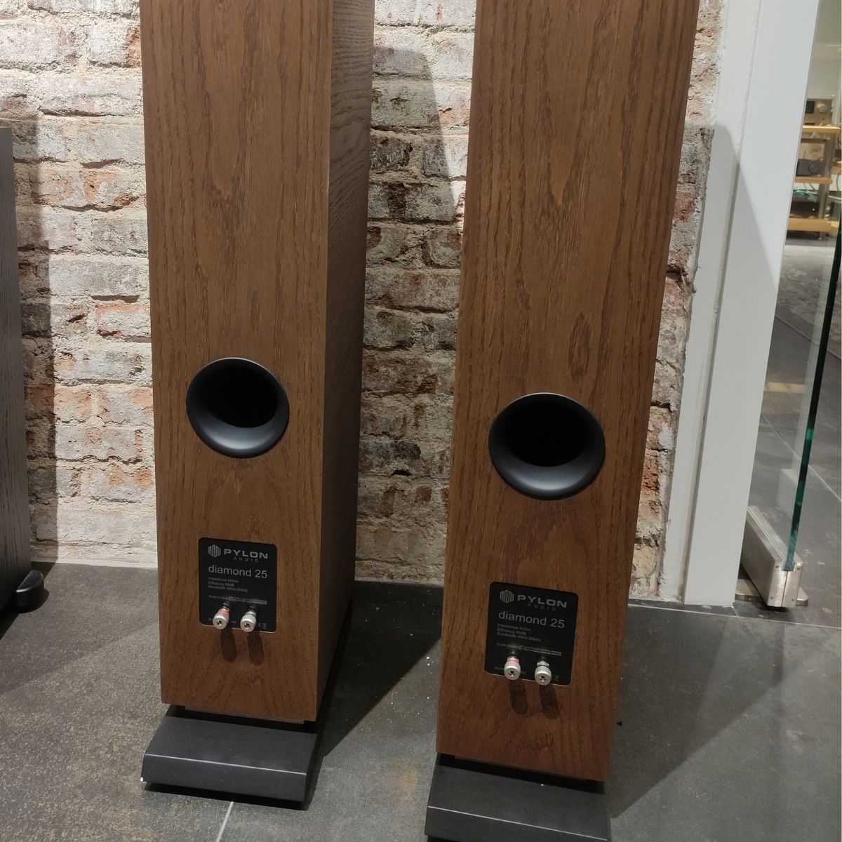 La Diamond 25 es una versión más pequeña de la Diamond 28 y es una especie de novedad estructural en la oferta de Pylon Audio. Las cajas han sido rediseñadas, también presenta una ligera desviación en la parte posterior, para que tenga estabilidad la columna de ha extendido la base inferior. Dicho tratamiento de inclinación se hace para compensar la relación de fase entre los altavoces montados, así como proporcionar una impresión visual positiva.