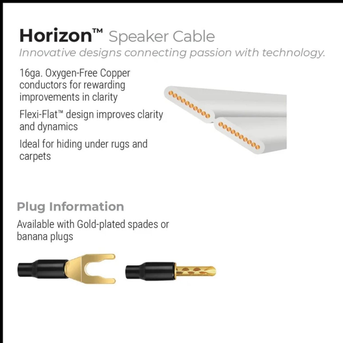 El cable plano para altavoz de alta gama Horizon™ de Wireworld ofrece gran valor y fácil ocultación. Con conductores Flexi-flat OFC de calibre 16 con aislamiento blanco flexible, este cable plano para altavoz es tan delgado como una moneda de diez centavos (1,4 mm) y tan solo 10 mm (3/8″) de ancho, lo que lo hace ideal para ocultarse bajo molduras y alfombras.